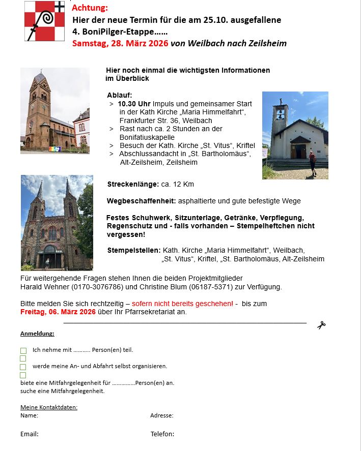 • Samstag, 24.10.2026: Etappe 8 Dortelweil bis Büdesheim (9,9 km)
