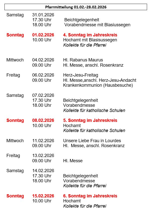 Sa | Feb. 07 | 18:00 Uhr | Vorabendmesse